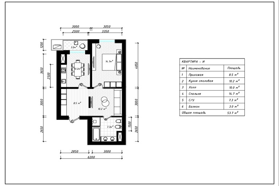 2-комнатные квартиры имеют площадь от 54 до 68 кв. м.