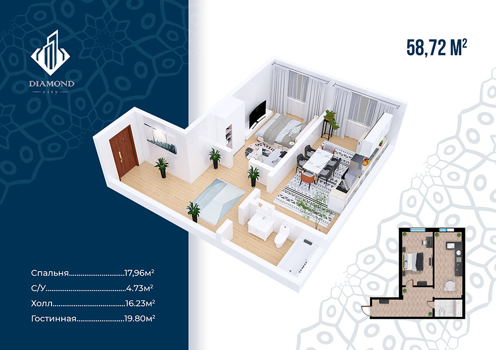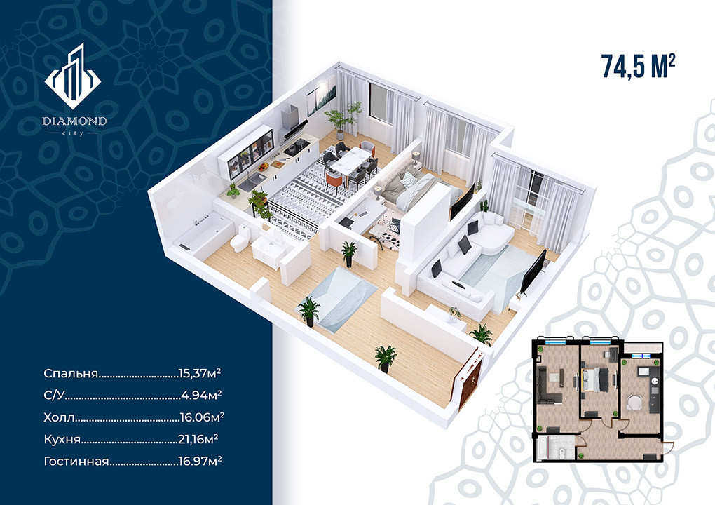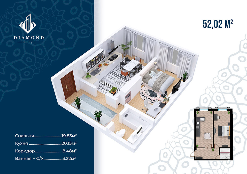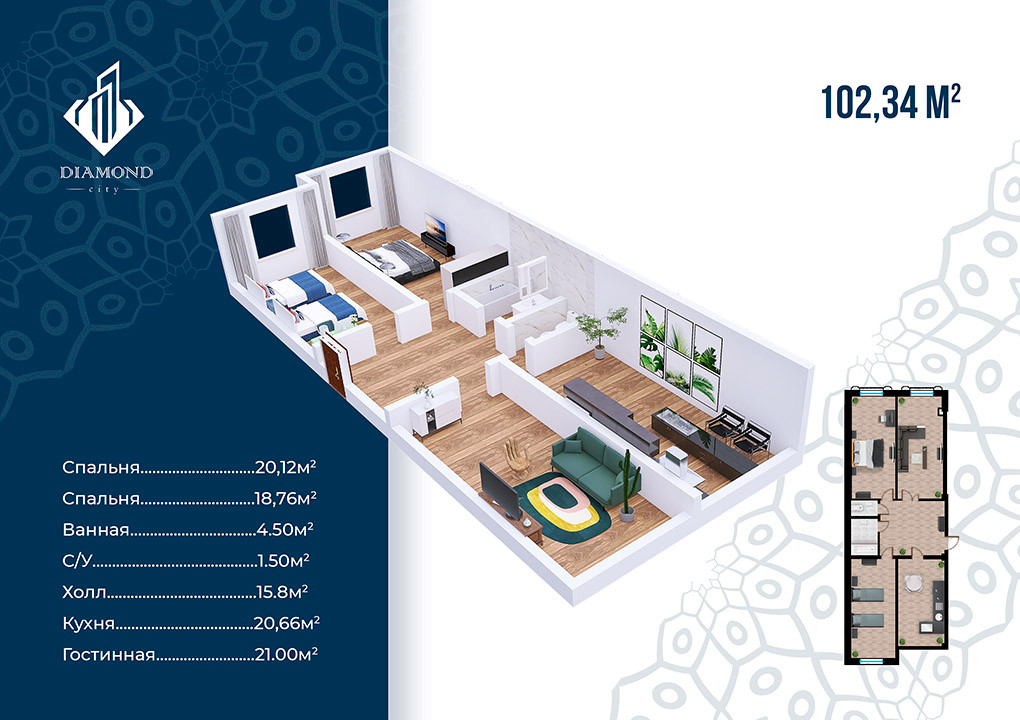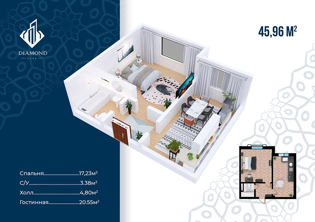 Комплекс находится в процессе строительства, которое закончится в 2024 году, что означает возможность покупки квартиры по более низкой стоимости. В жилом комплексе премиум-класса Diamond City доступны 1, 2 и 3-х комнатные квартиры с чистовой отделкой и квадратурами от 46 до 102 квадратных метров. Возможность покупки квартиры в рассрочку также станет приятным бонусом, помогающим не переплачивая распланировать свой бюджет и обзавестись новым жильем.