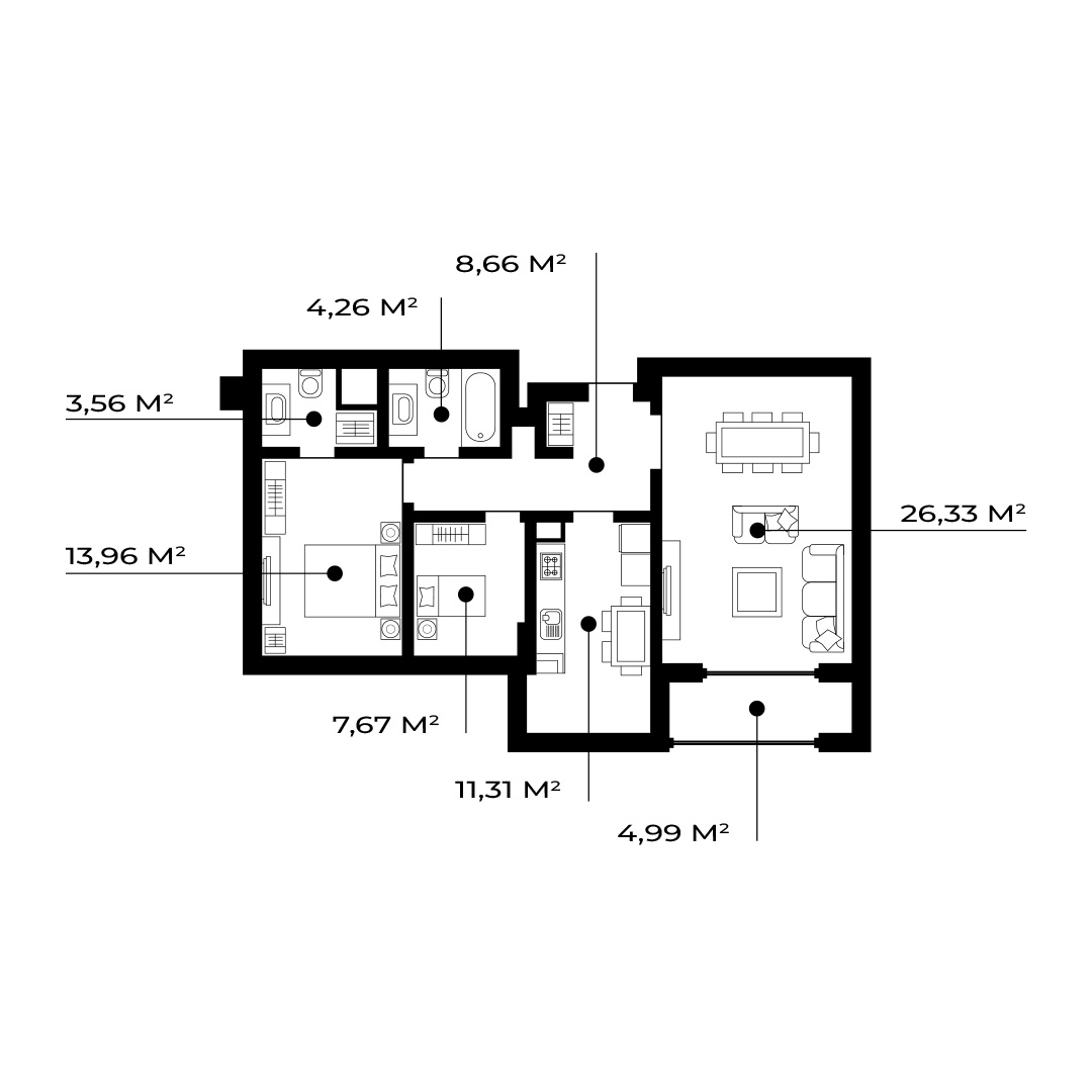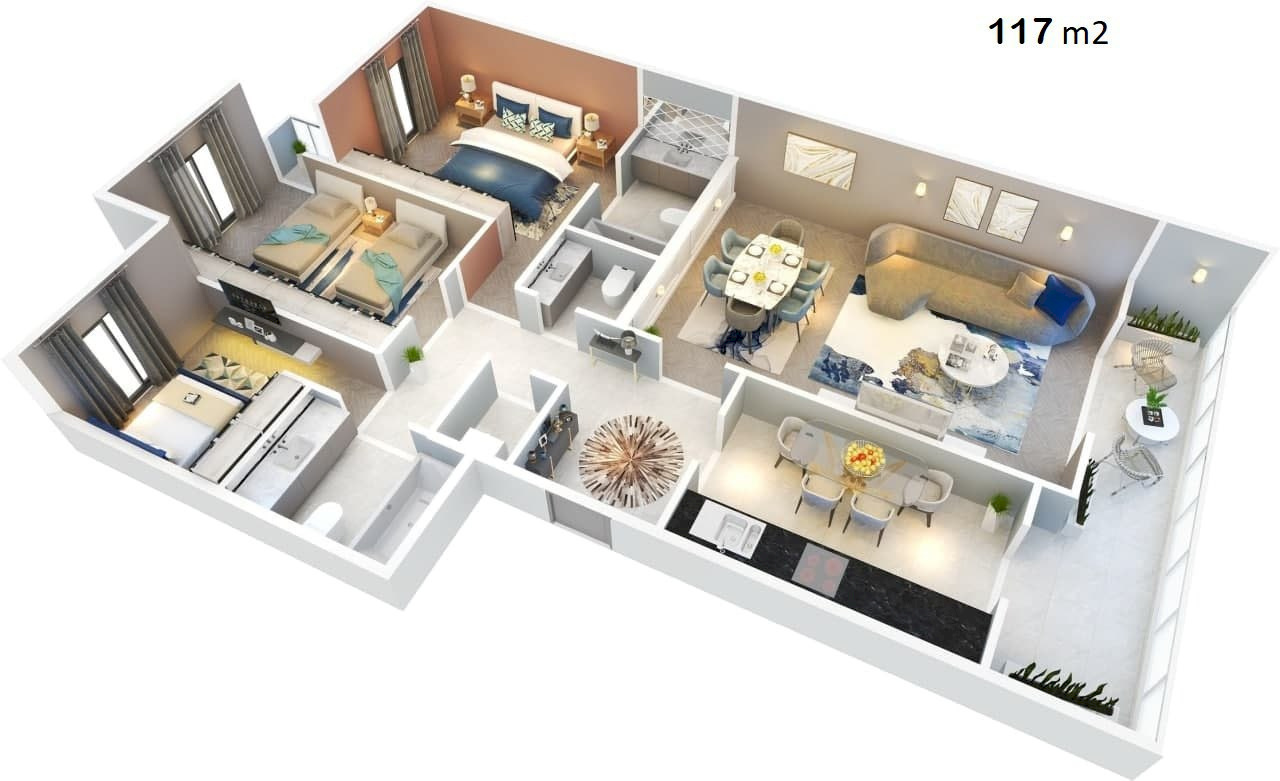 Квартиры в комплексе продаются сразу с чистовой отделкой, позволяющей сразу организовать переезд в новый дом. К покупке доступны 2-х и 3-х комнатные квартиры с площадью 72 и 91 квадратный метр. Также имеется удобная система скидок при 100% оплате