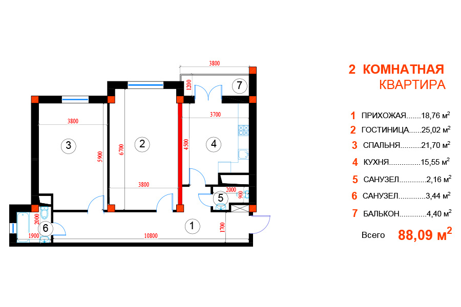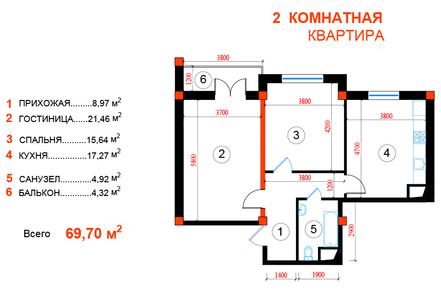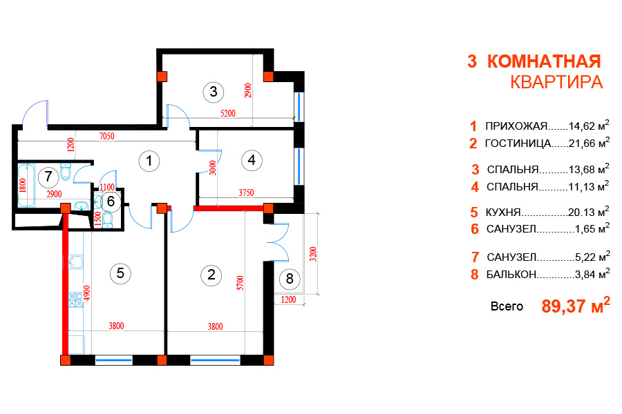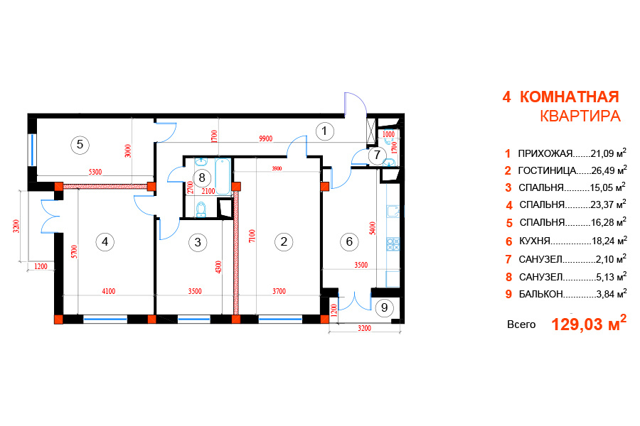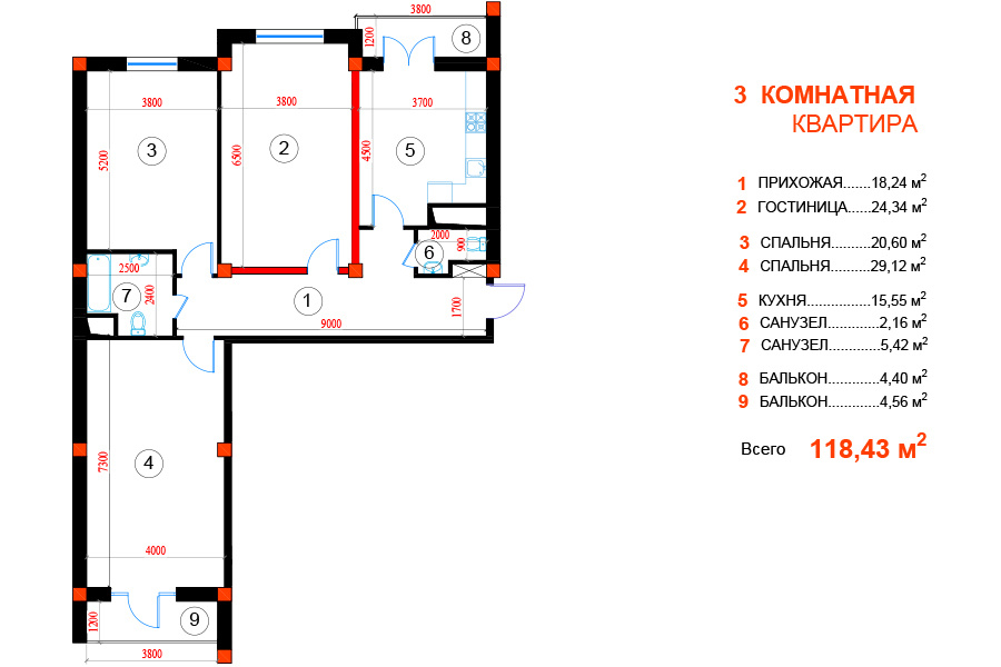 - Отделка: Черновая