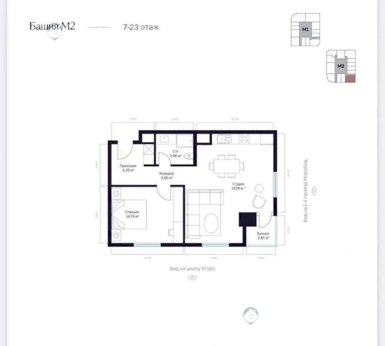 Кроме того, в шаговой доступности находятся кафе, рестораны, медицинские учреждения и зоны отдыха, что делает проживание в комплексе максимально комфортным.
