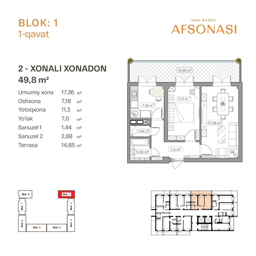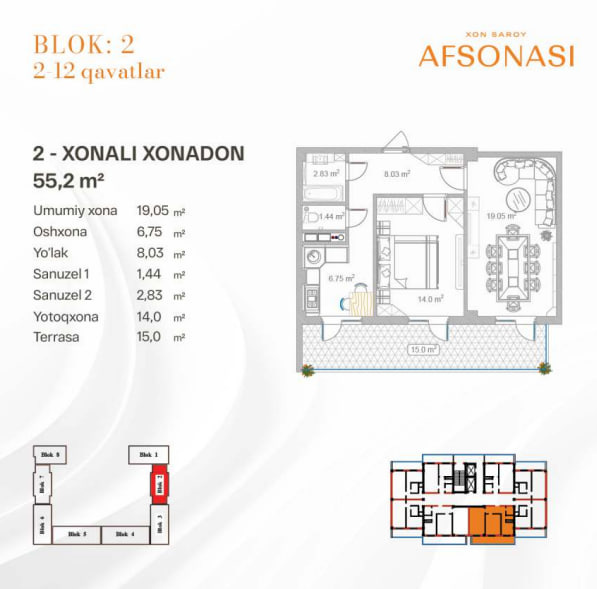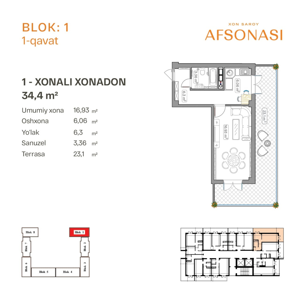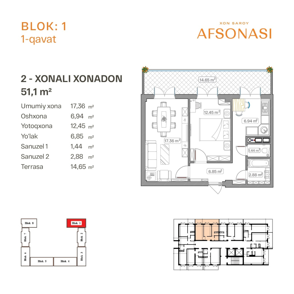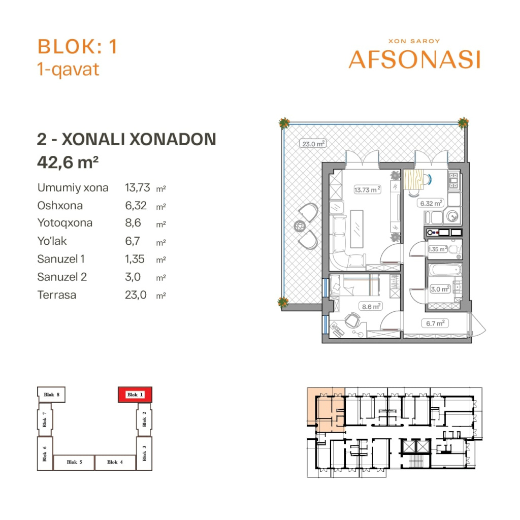 Majmuada turli tarkibdagi oilalar uchun mo‘ljallangan turli variantdagi xonadonlar mavjud. Xonadonlar zamonaviy qulaylik va funksionallik talablarini hisobga olgan holda loyihalashtirilgan.