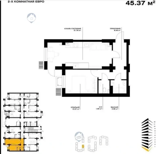 2-xonali kvartira, 42.78 m²
