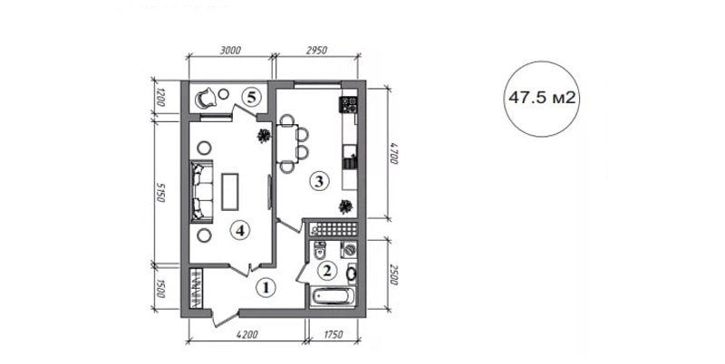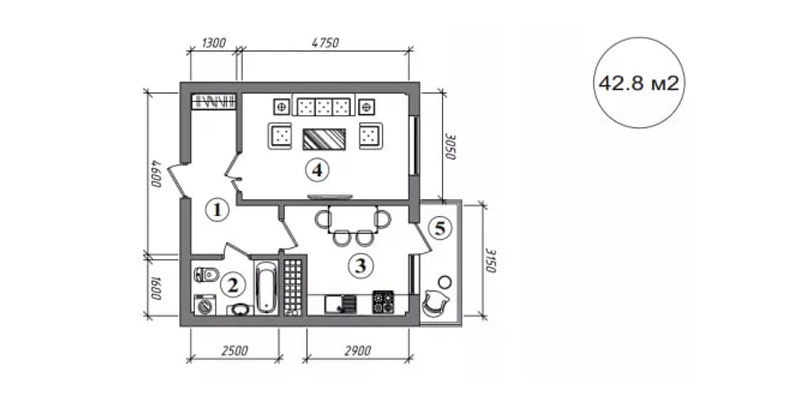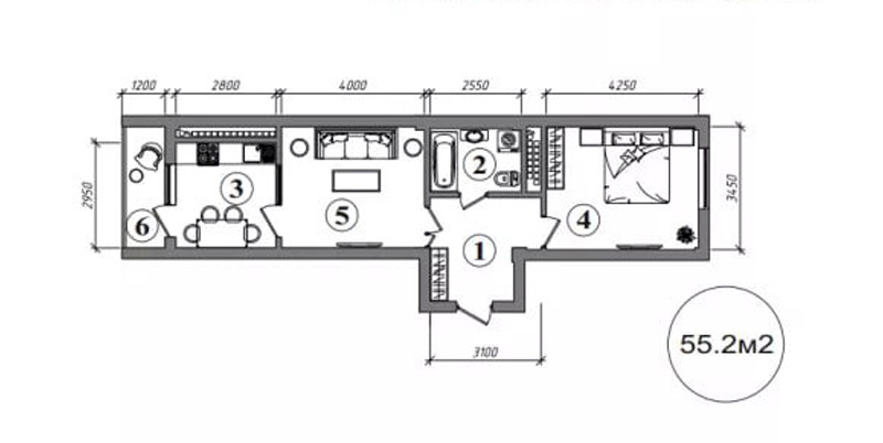1 xonali: 43-48 m2, 555 mln so‘mdan