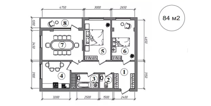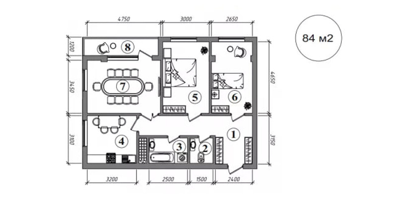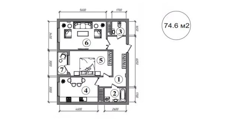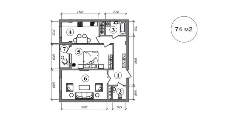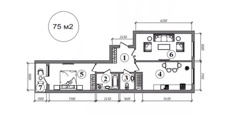 2 xonali: 55-75 m2, 716 mln so‘mdan