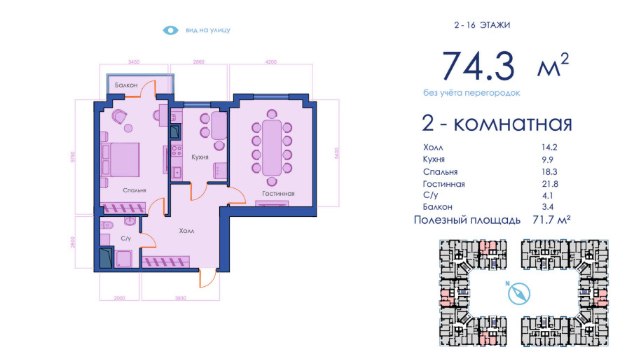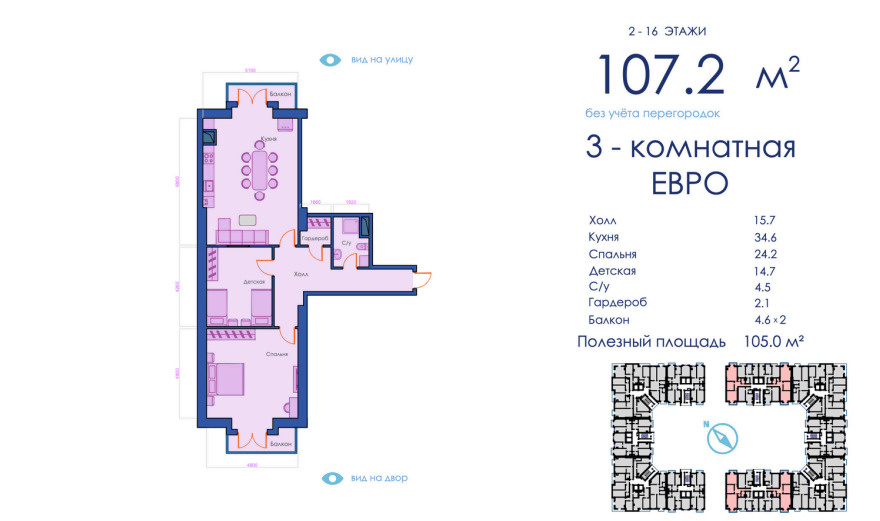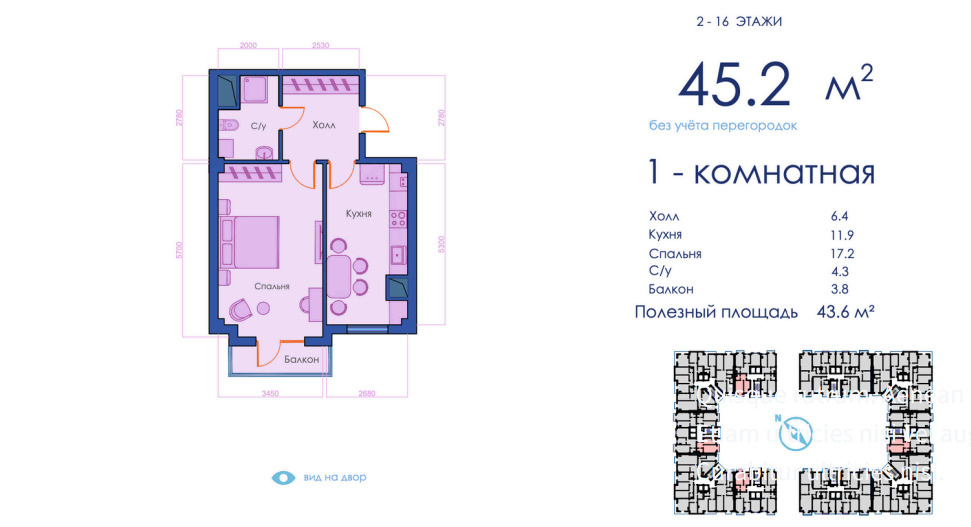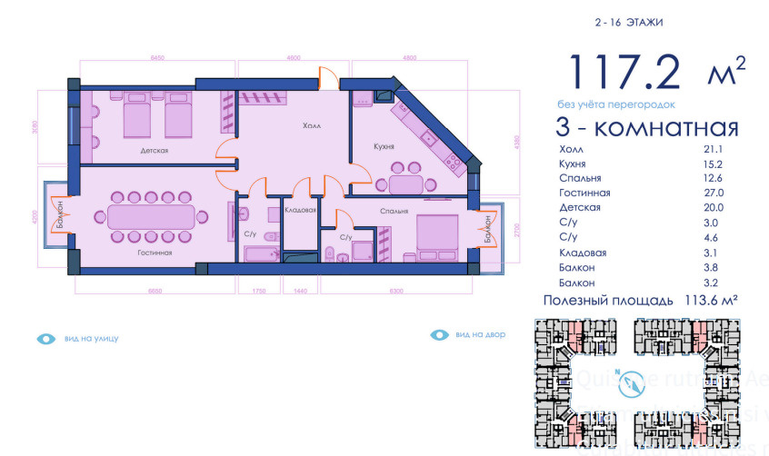 Kompleks turli xil kvartiralarni taklif qiladi: maydoni 45,2 m² dan 117 m² gacha, shaxsiy yoki oilaviy ehtiyojlarga mos. Binolar zamonaviy va bardoshli materiallardan qurilgan bo‘lib, estetik va qulay yashash muhitini ta’minlaydi. Ichki joylashuv ergonomik va qulay koridorlar bilan ajralib turadi.