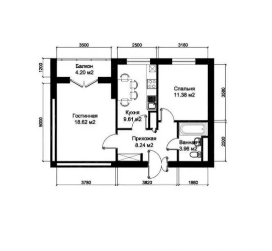 1 xonali xonalar 45 kvadrat metr maydonga ega. Ularning narxi 406.800.000 so'mdan boshlanadi.