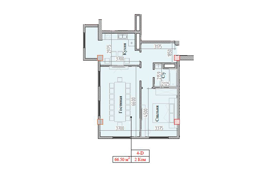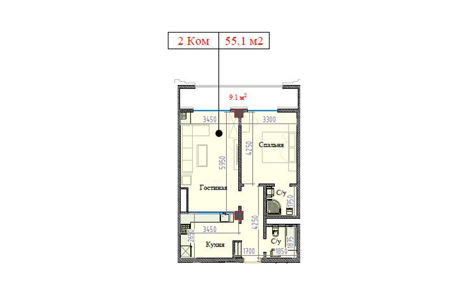 2 xonali: maydoni 55 dan 80 m2 gacha, narxi 965 mln so‘mdan boshlanadi.
